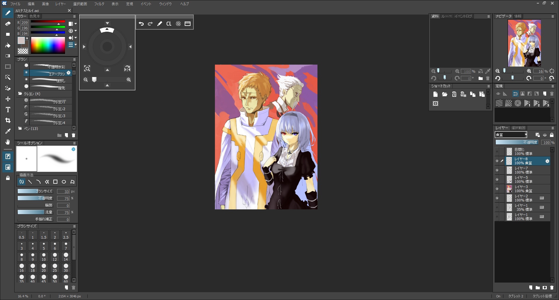 あまり効率は求めてないので、描くのは遅くて粗いタッチなんですが、